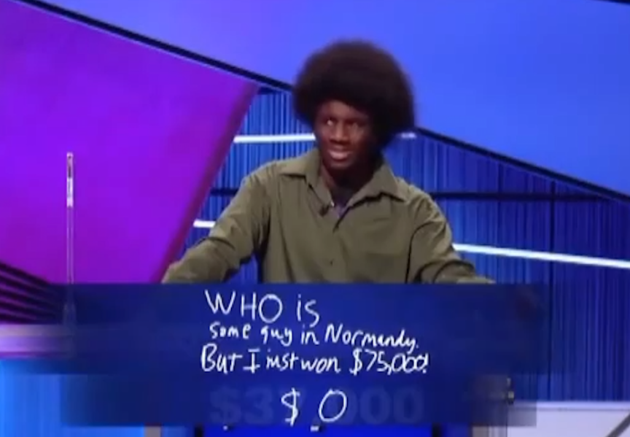 Given answer: "WHO is some guy in Normandy. But I just won $75,000!"